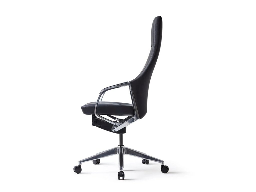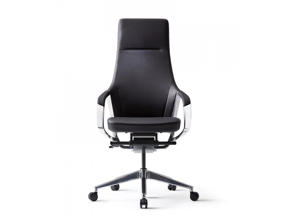 Kancelářská židle - otočná se synchronní mechanikou, nosnost 120 kg, sedák s nastavitelnou výškou, opěrák s nastavitelným sklonem, chromované pevné područky, plastová a pogumovaná kolečka o průměru 6,5 cm, chromovaná konstrukce, materiál potahu umělá kůže, rozměry 66 × 68 cm (Š×H)