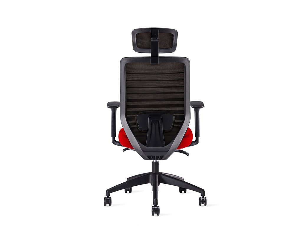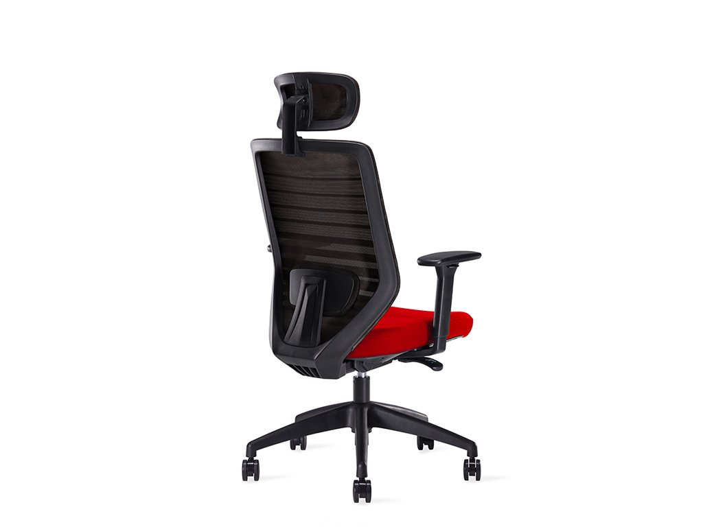 - Opěrák čalouněný černou pruhovanou síťovinou zajišťující celodenní větrání zad.