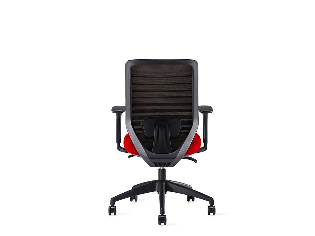 - Opěrák čalouněný černou pruhovanou síťovinou zajišťující celodenní větrání zad.