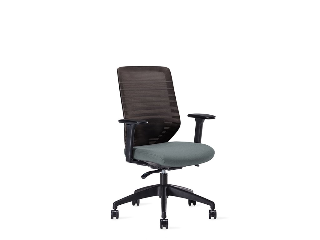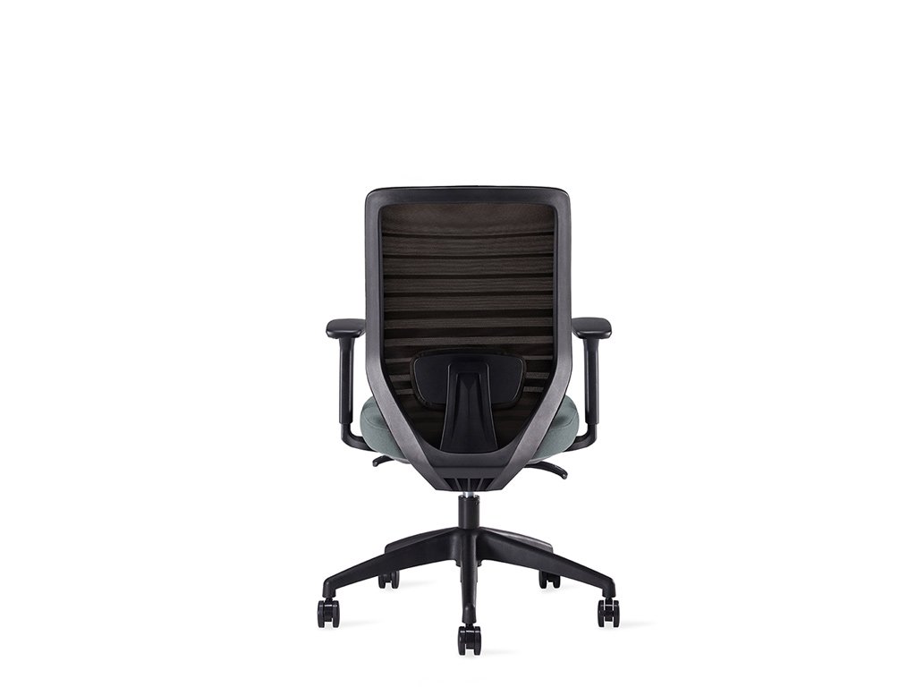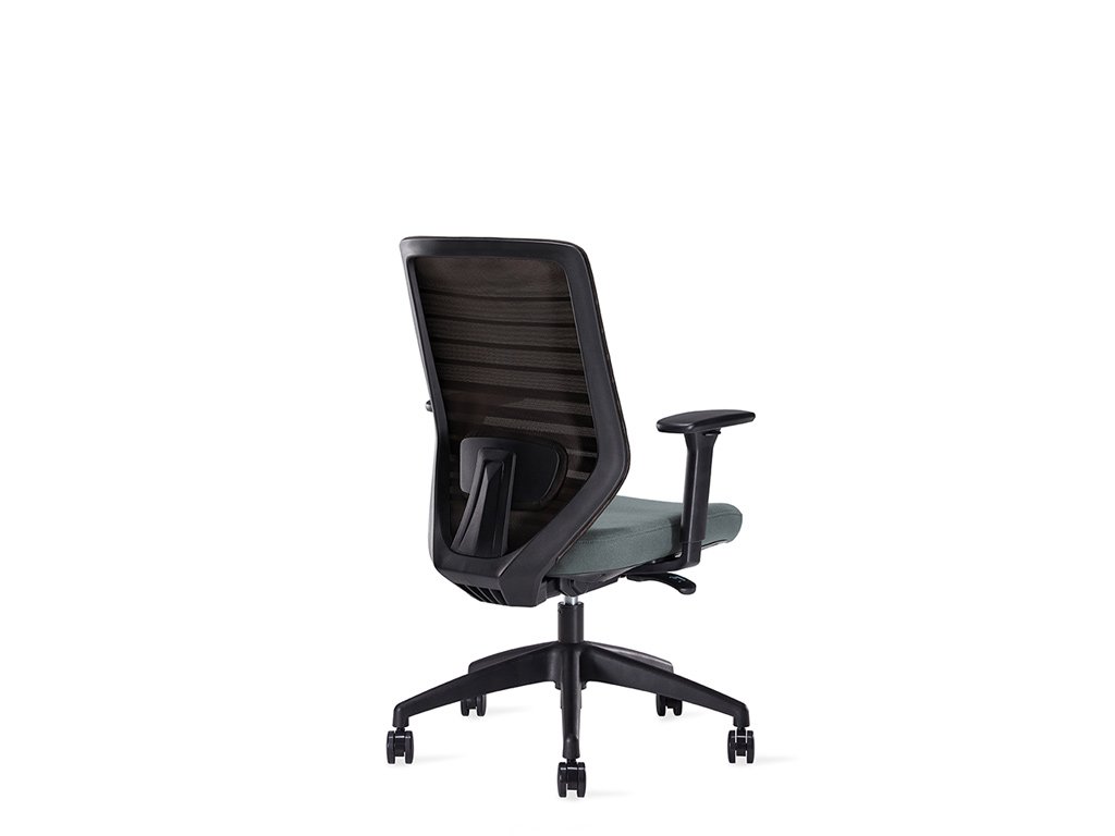 - Opěrák čalouněný černou pruhovanou síťovinou zajišťující celodenní větrání zad.
