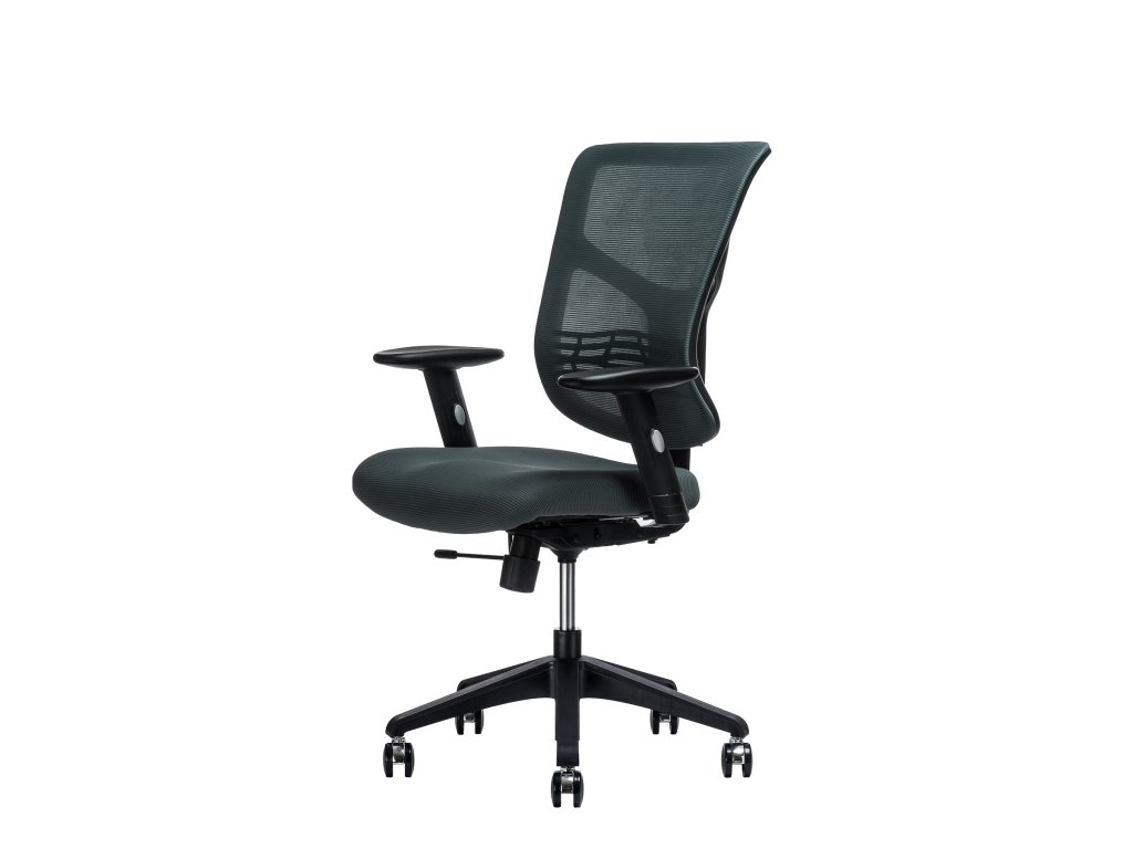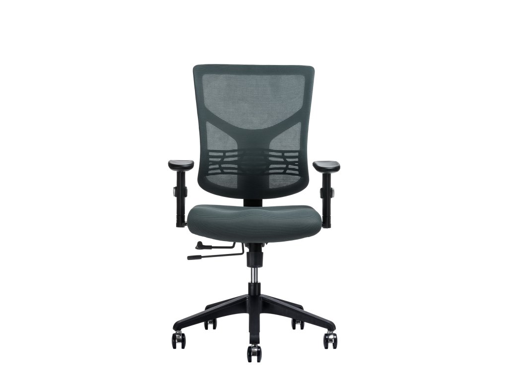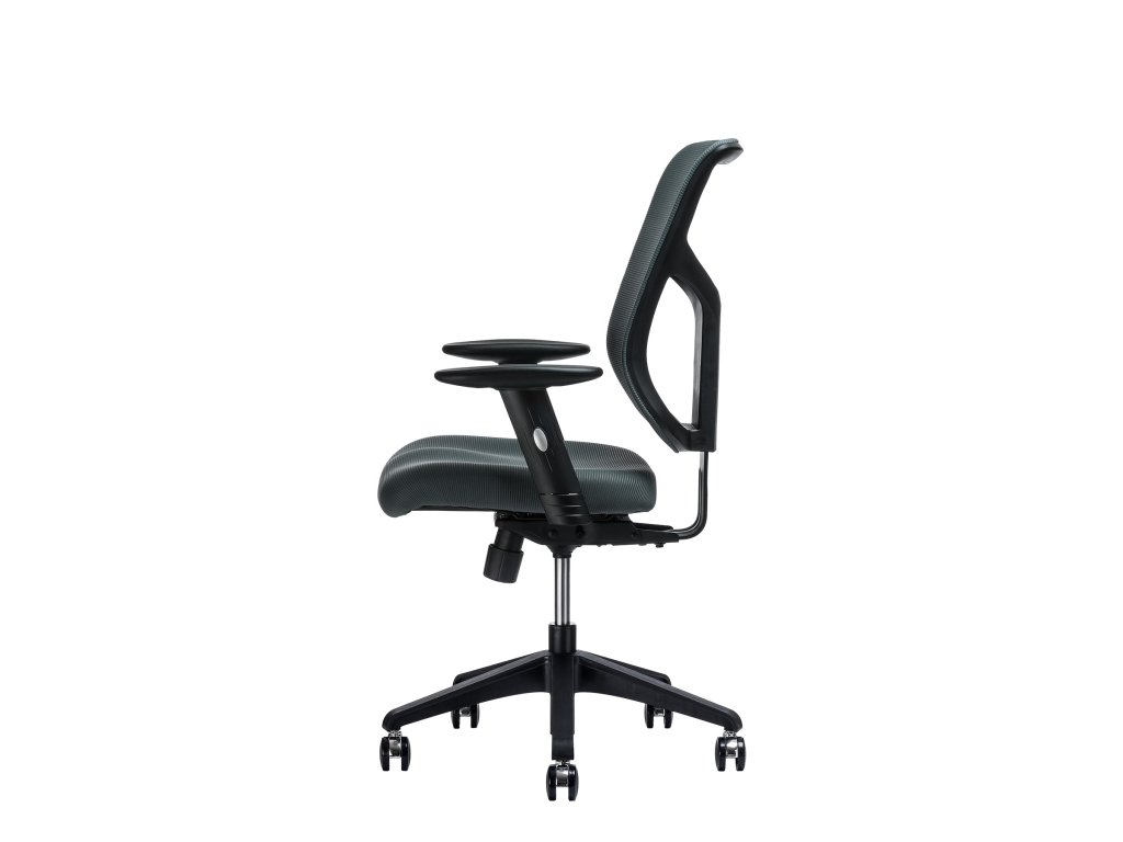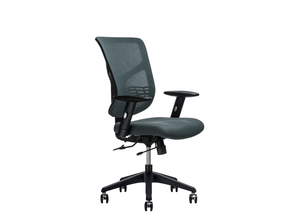 Kancelářská židle - otočná se synchronní mechanikou, nosnost 120 kg, anatomicky tvarovaný sedák s nastavitelností hloubky a výšky, bederní opěrka, opěrák s nastavitelným sklonem, opěrák s možností nastavení výšky, područky s možností nastavení výšky, plastová a pogumovaná kolečka o průměru 6,5 cm, plastová konstrukce, materiál potahu síťovina, rozměry 67 × 56 cm (Š×H)